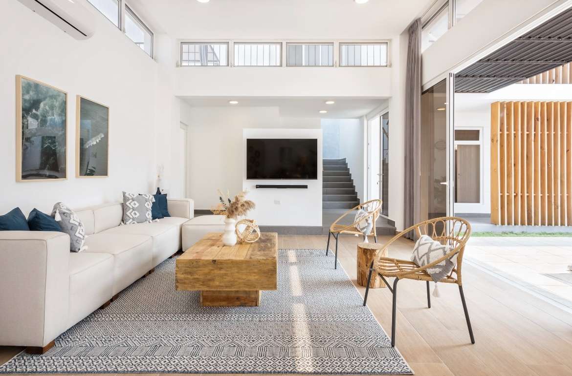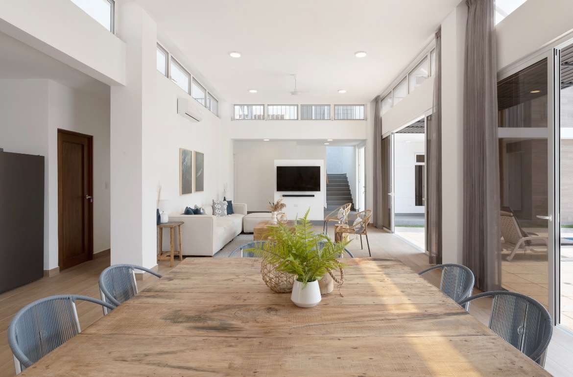 Área social de sala y comedor con altura de 3.65 m.