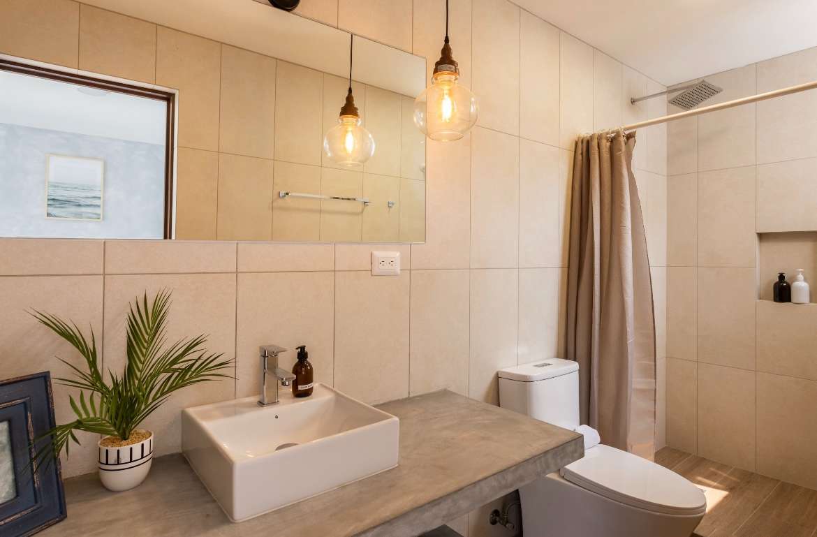 - Baño con ducha en zona de piscina